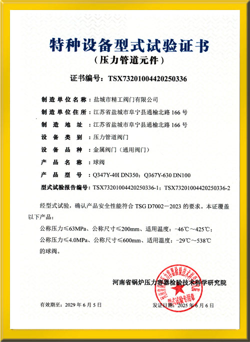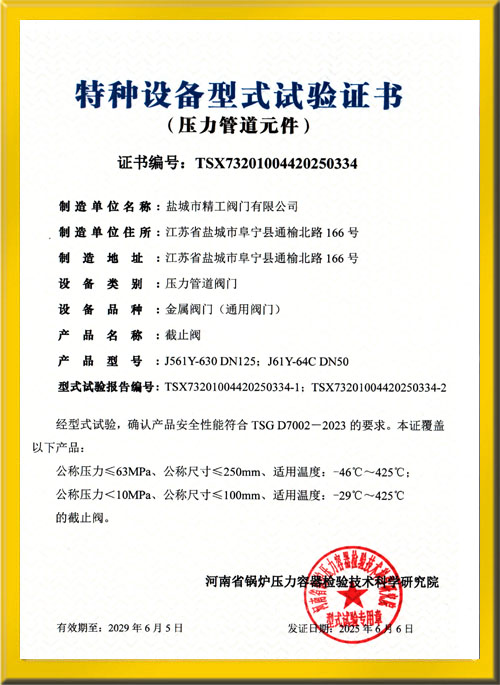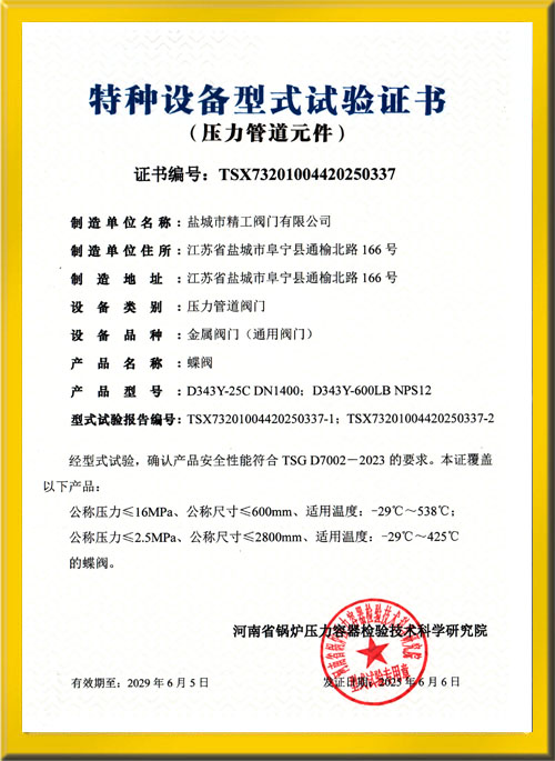 調(diào)節(jié)閥(控制閥)試驗(yàn)證書